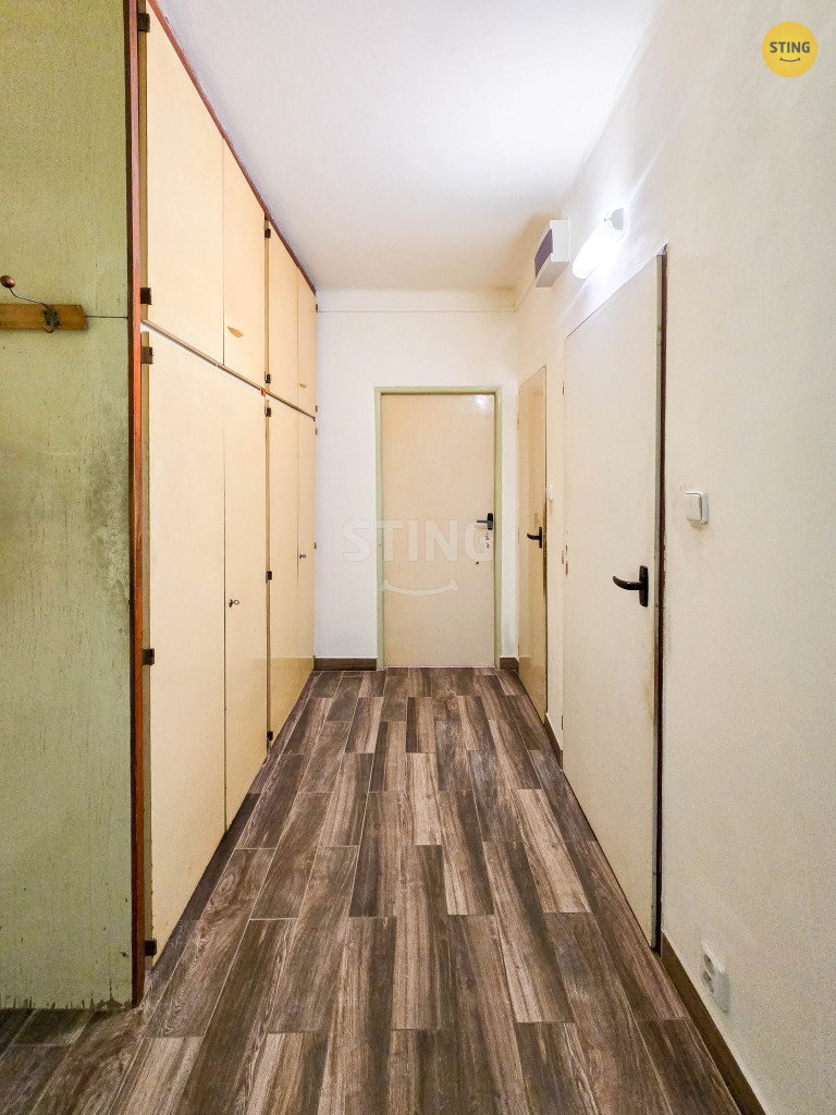 zaskleným balkónem s výhledem do dvora. V předsíni je původní