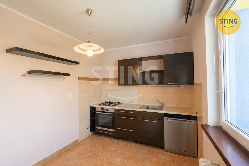 V koupelně je sprchový kout, v kuchyni funkční zachovalá kuchyňská