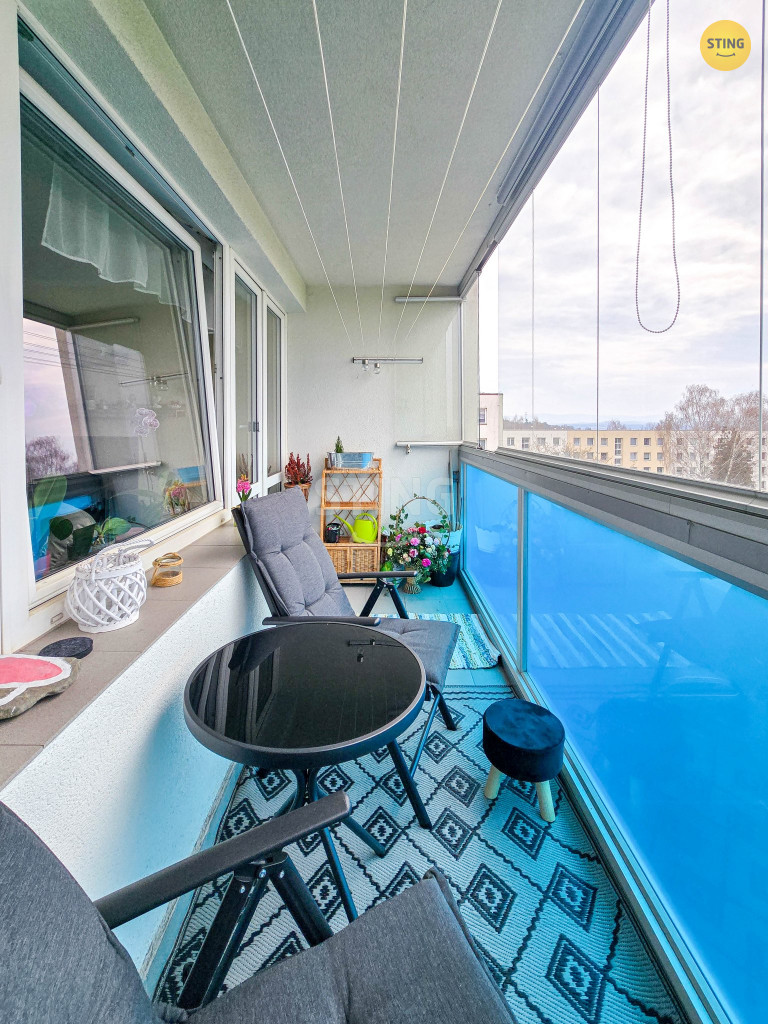 Lodžie je součástí velikého obývacího pokoje (19m2), který
