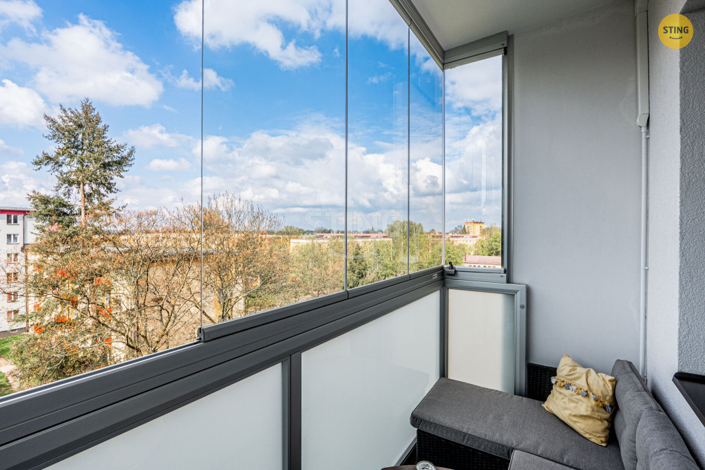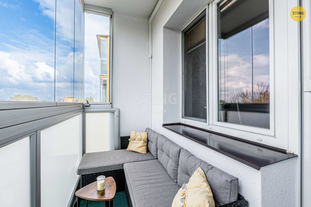 tónech a přirozeně navazuje na obývací část bytu. Zasklená lodžie