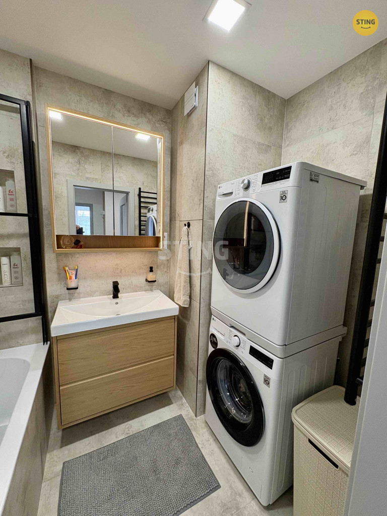 vanou, umyvadlem a nabízí dostatek prostoru pro pračku i sušičku.