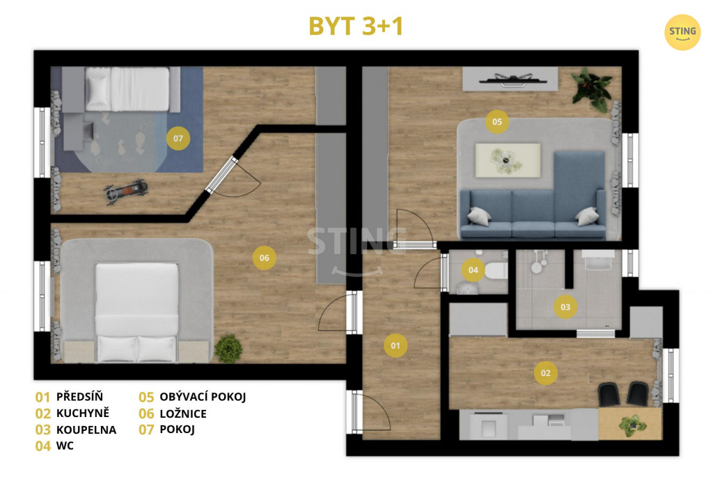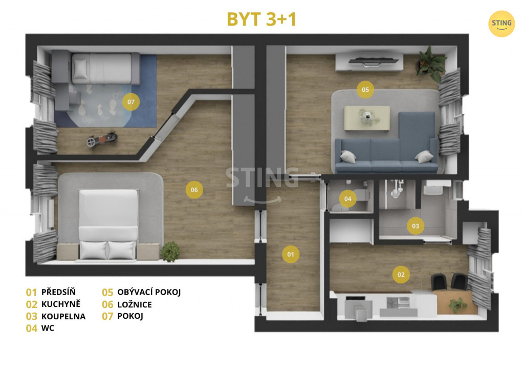 Nabízíme k prodeji byt v osobním vlastnictví o dispozici 3+1 na adrese