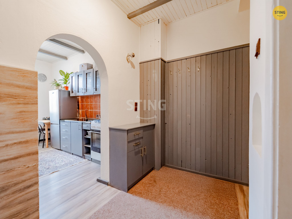 Ze vstupní síně je přístup do kuchyně, jednoho pokoje, samostatného WC a