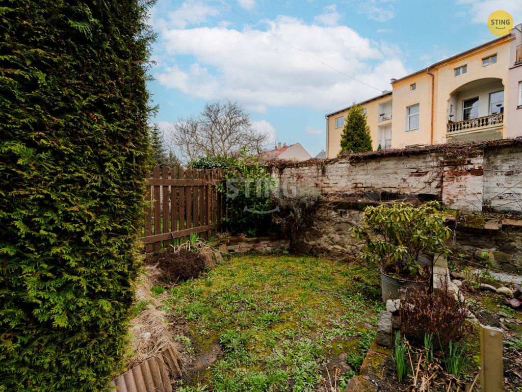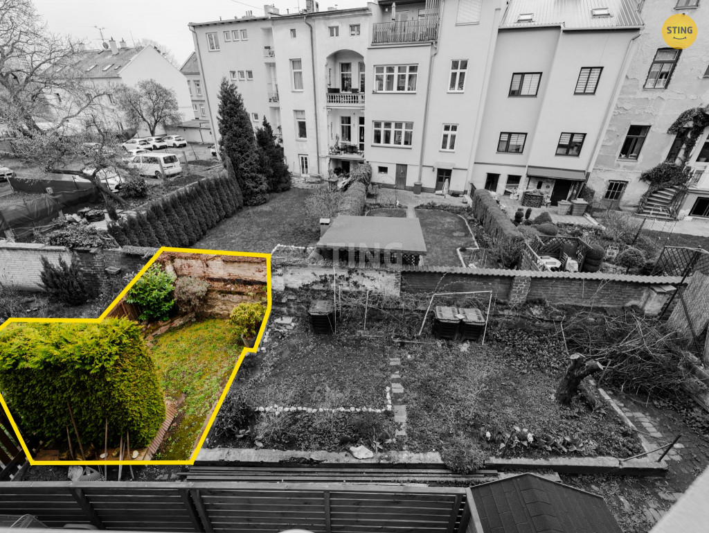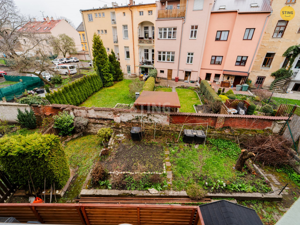 cihlového domu s upraveným vnitroblokem, kde je k dispozici dvorek a menší
