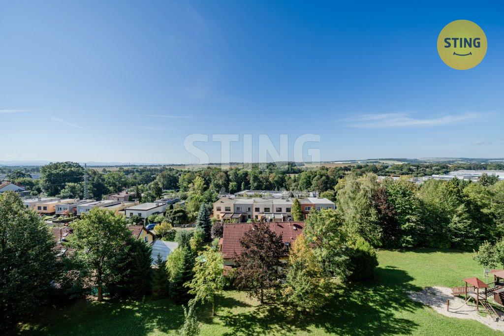 přímo na patře. Nachází se v klidné části s jižním výhledem do