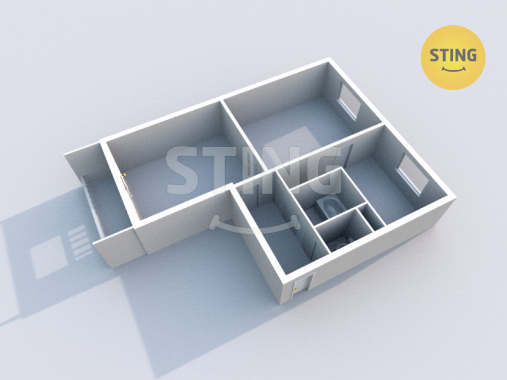 Velkou výhodou tohoto typu bytu jsou neprůchozí pokoje a prostorná chodba.