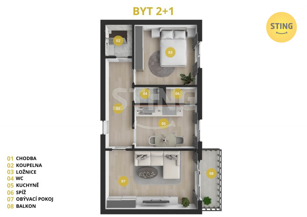 spíží, koupelna, samostatná toaleta a prostorná vstupní chodba. K bytu