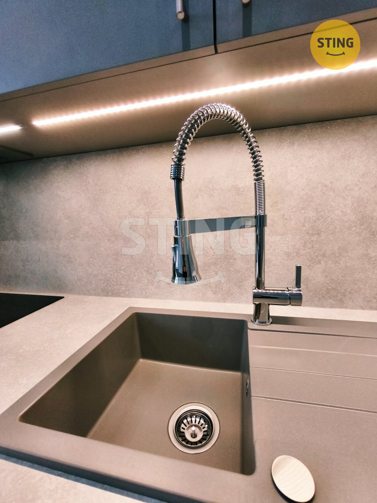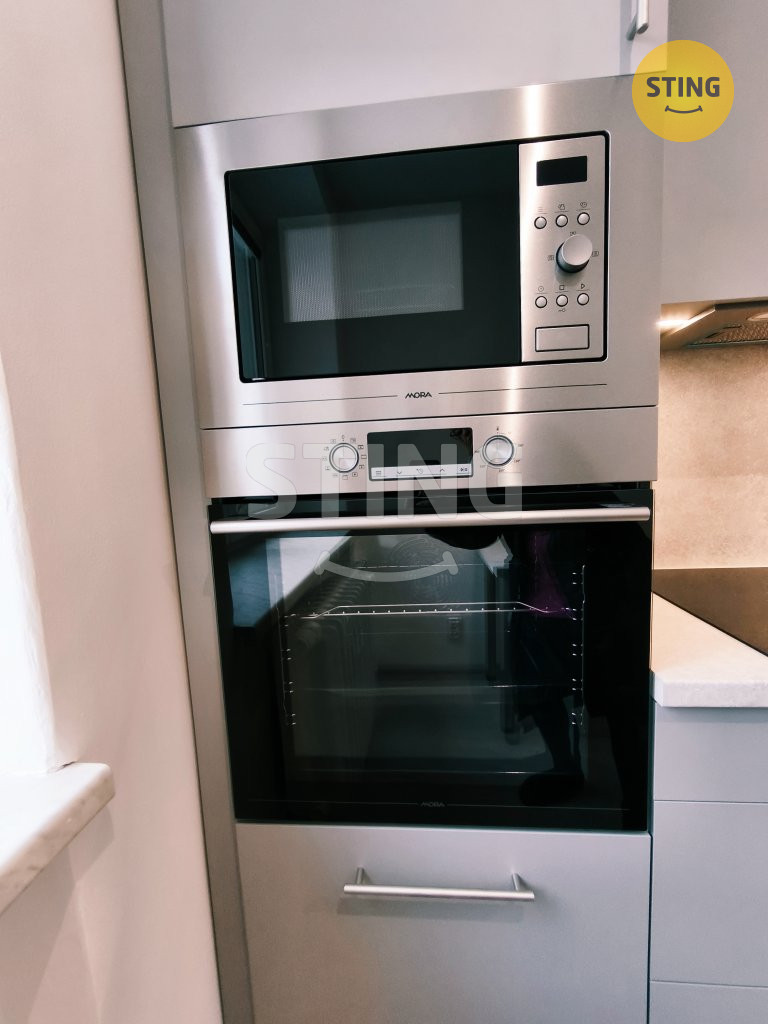 novou, prostornou kuchyňskou linkou na míru včetně spotřebičů