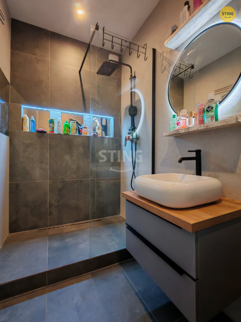 koutem, umyvadlem a místem pro pračku a sušičku, samostatné WC a předsíň