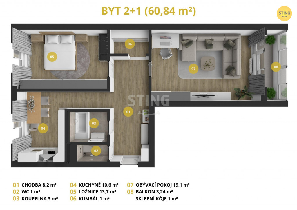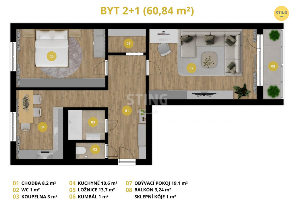 nebo hledají zajímavou investici. K bytu náleží zasklená lodžie, která