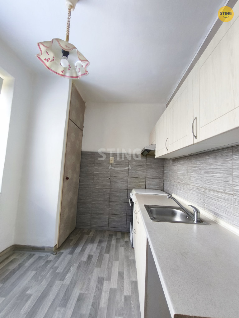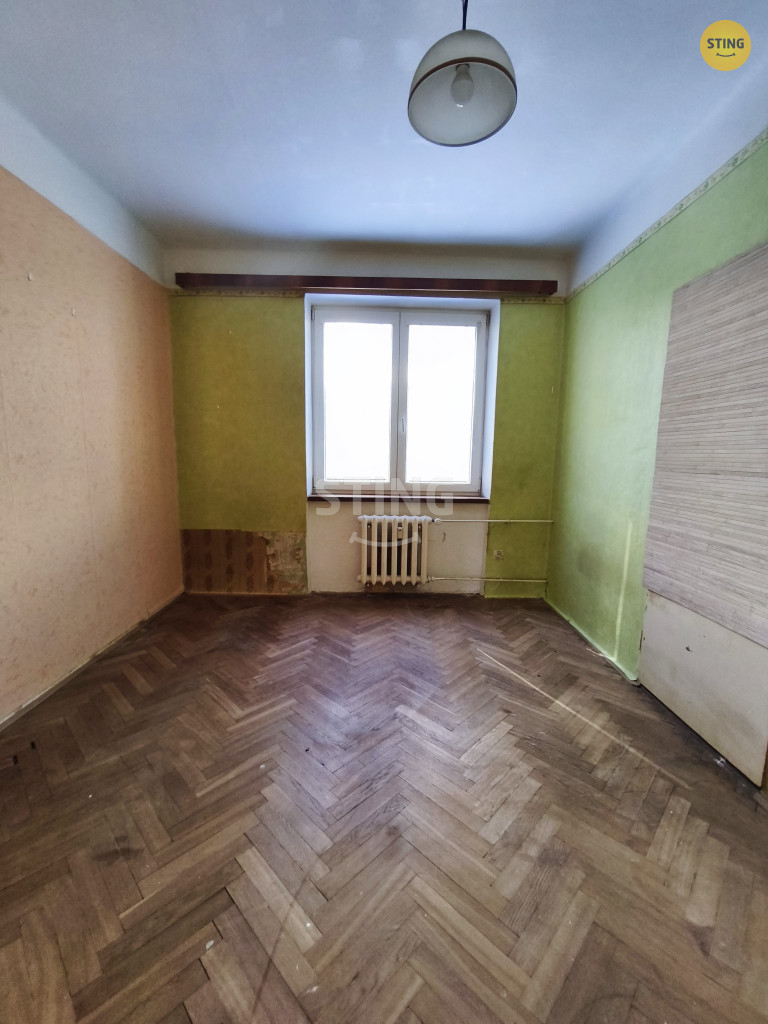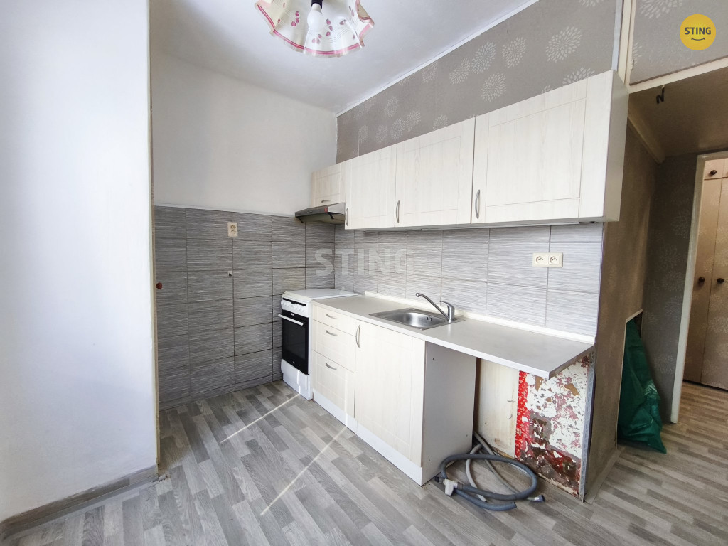 Dispozice bytu nabízí tři samostatné pokoje a kuchyň s potenciálem