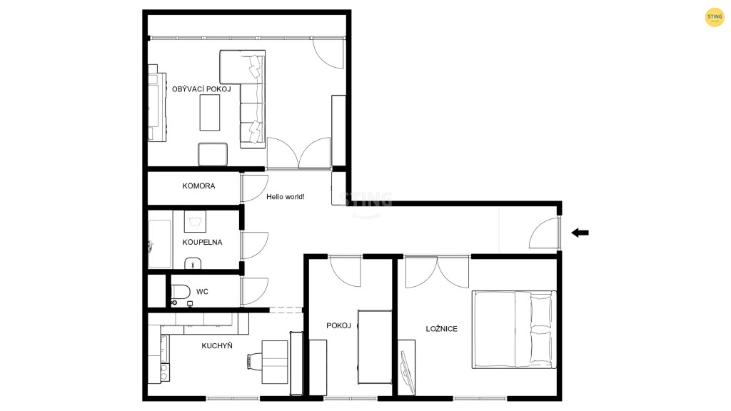 vstupem na lodžii o rozloze 5m2. Výhodou bytu jsou okna na dvě…