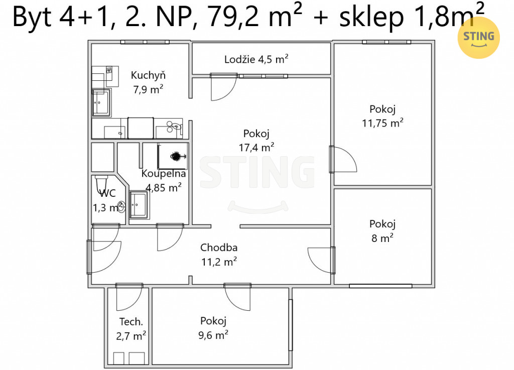 Nabízíme k prodeji prostorný a světlý byt o dispozici 4+1 a celkové