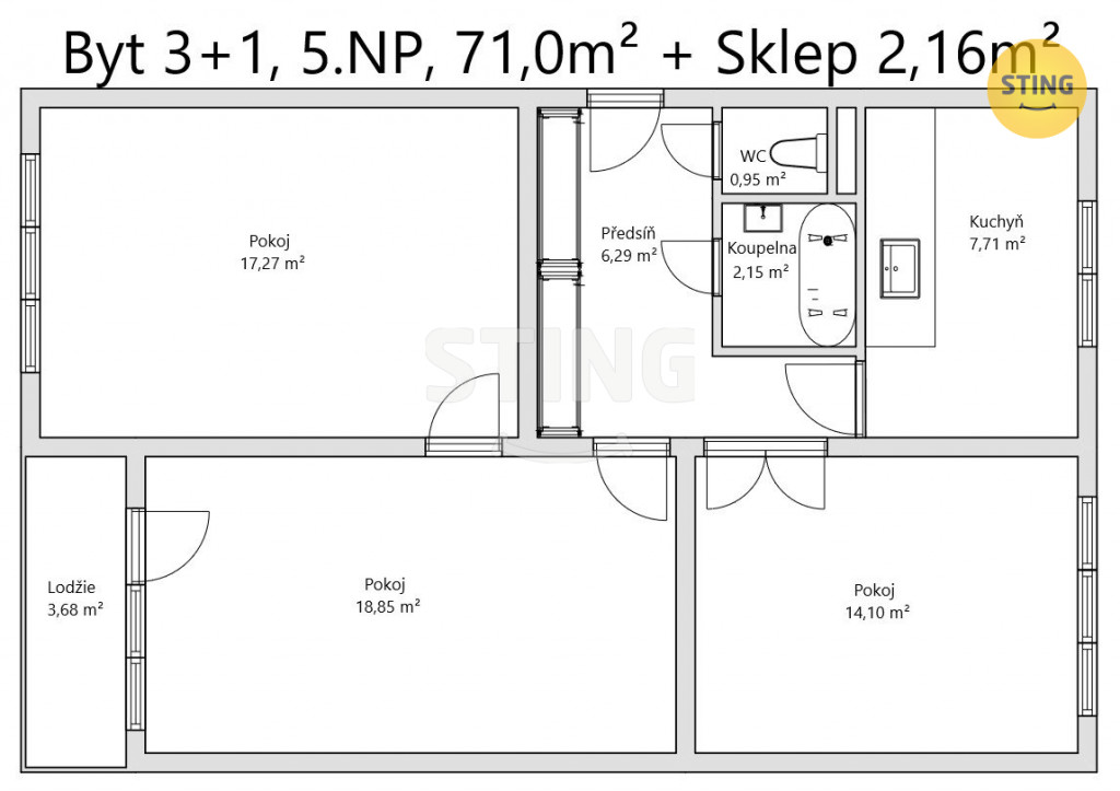 3+1 s celkovou plochou 69 m2 a lodžii o velikosti