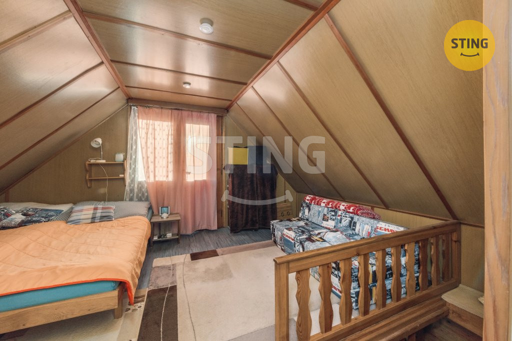 podkroví, kuchyňský kout a zasklená lodžie. V podkroví jsou