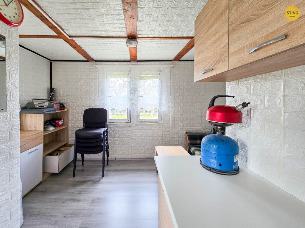 Nabízíme Vám ke koupi zahradní chatku stojící na pozemku Státního pozemkového úřadu (ve vlastnictví České republiky), která se nachází v zahrádkářské oblasti Karviná – Staré Město, Olšiny. Chatka je velmi dobře udržovaná, má novou kuchyňskou linku, ledničku, je položená nová plovoucí podlaha a interiéch chatky je také nově obložený. Na střeše jsou fotovoltaické panely pro výrobu elektrické energie (nabíjení telefonů, rádio, čerpadlo na vodu ze studny). Před chatou je kryté posezení se spoustou místa a zahradním nábytkem. K dispozici je na pozemku krytá studna pro čerpání vody. V kůlně na nářadí, která je součástí chatky, se nachází chemické WC. Chatka stojí na ploše 17 m2 a okolní pozemek má výměru dalších 386 m2. Nachází se zde skleník i udírna. Zahrádka je ideální pro každodenní či víkendový odpočinek. K jejímu užívání je potřeba uzavřít podnájemní smlouvu s Českým zahrádkářským svazem. Pro další informace a prohlídku zahrádky mě kontaktujte.