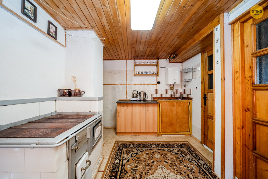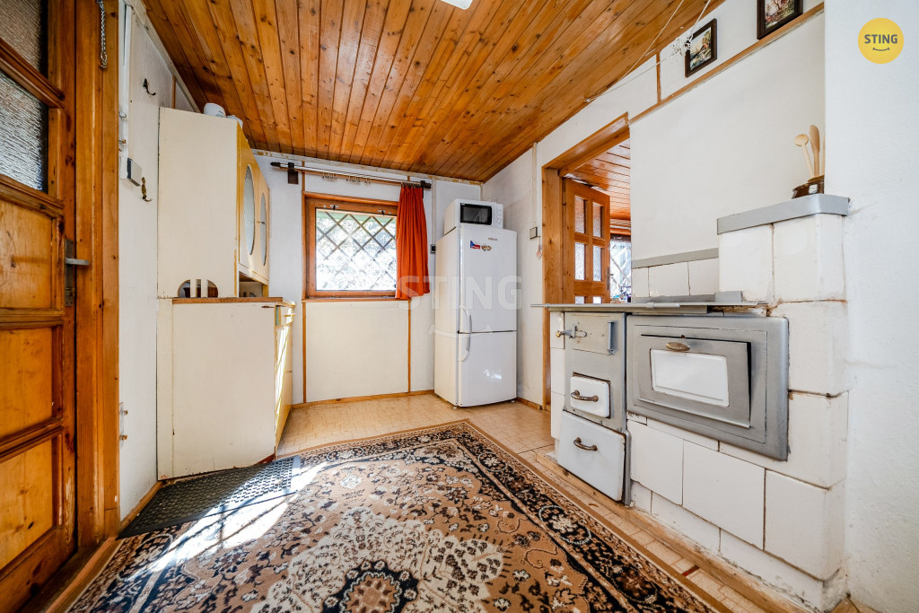 s lokálními kamny, ložnice, koupelna se sprchovým koutem a WC), podkroví