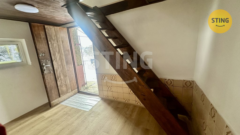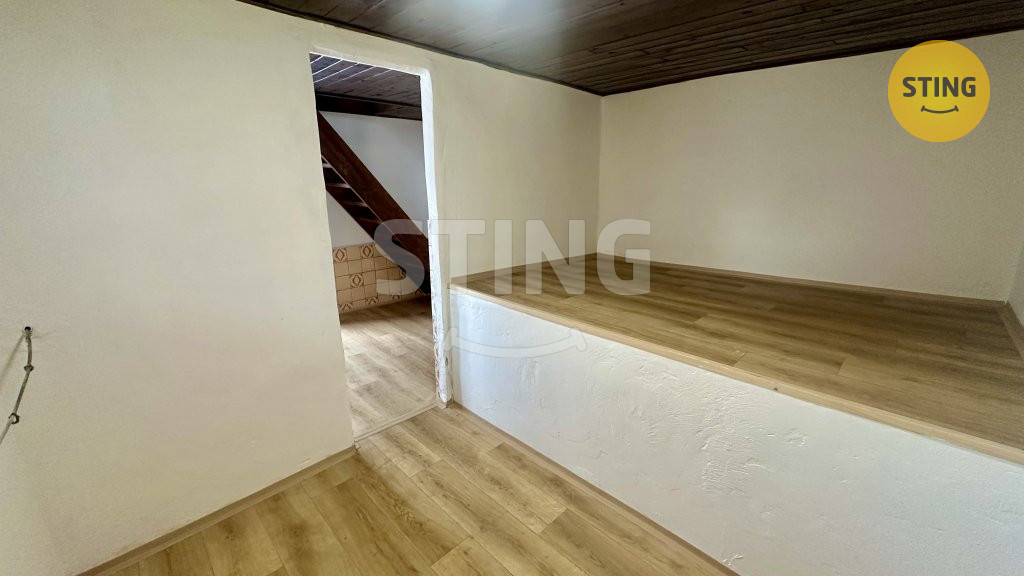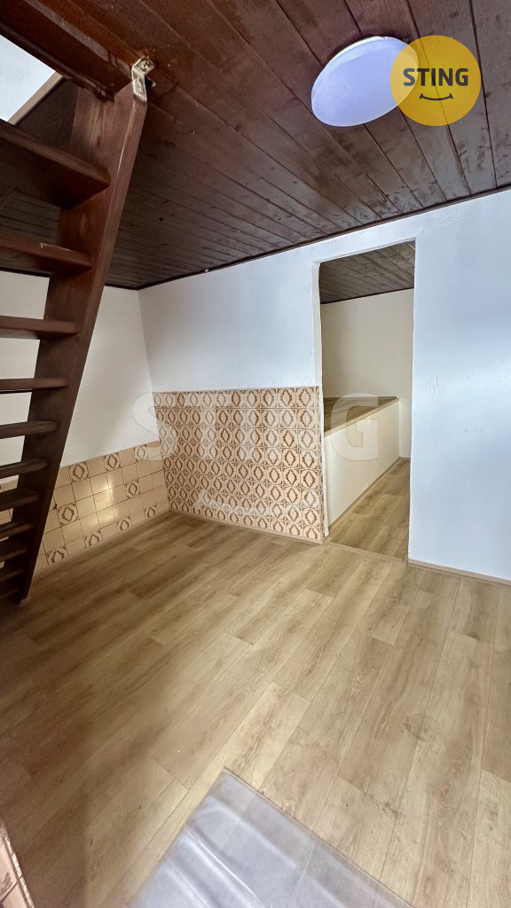 kuchyňský kout a prostor pro spaní či odpočinek. Po schodišti se dostanete
