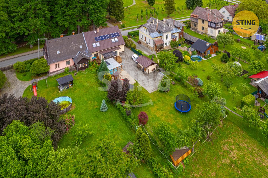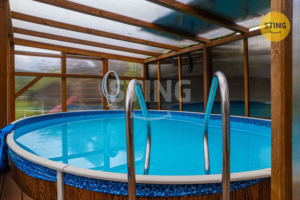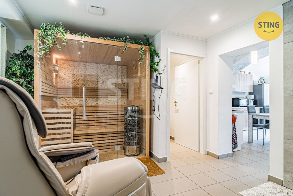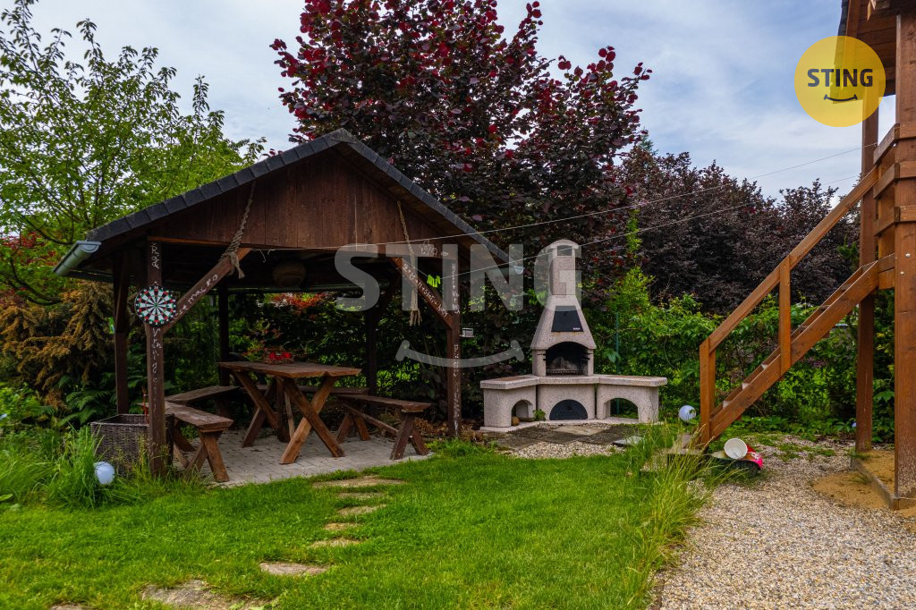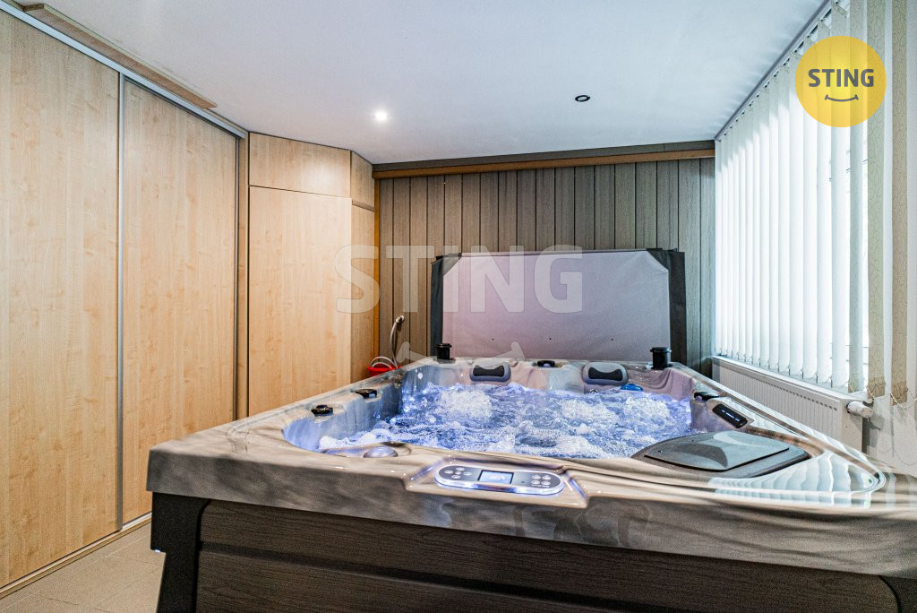 vířivka, masážní křeslo, pergola, grilovačka a parkování pro 4 vozy.