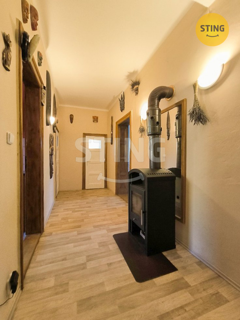 Jednotka 3+1 – po rekonstrukci – prostorná chodba s krbovými kamny,