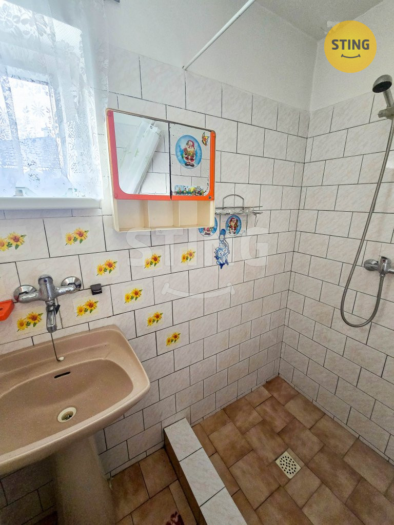 koutem je v obkladech a s dlažbou, WC samostatně. Kuchyň má také dlažbu