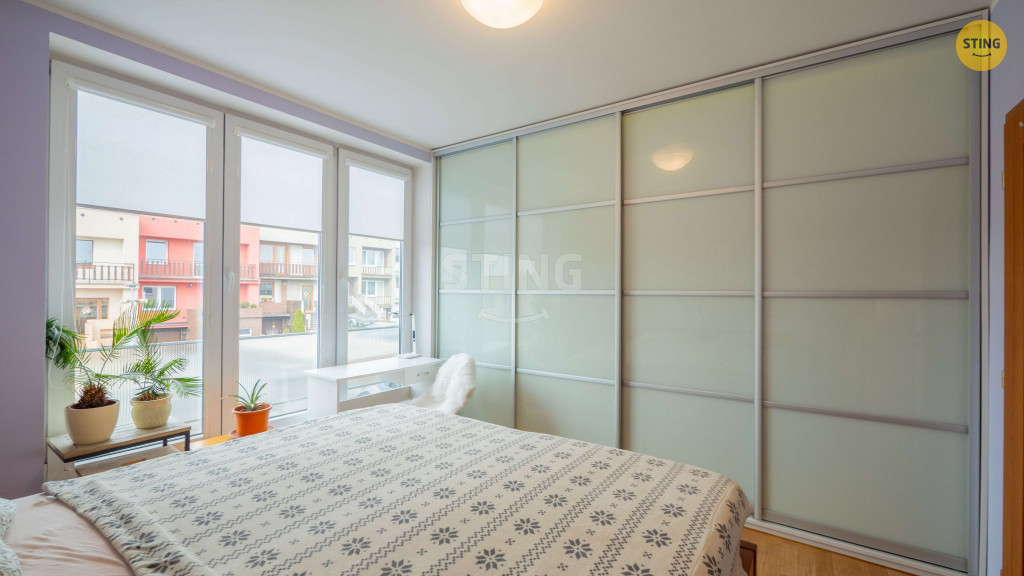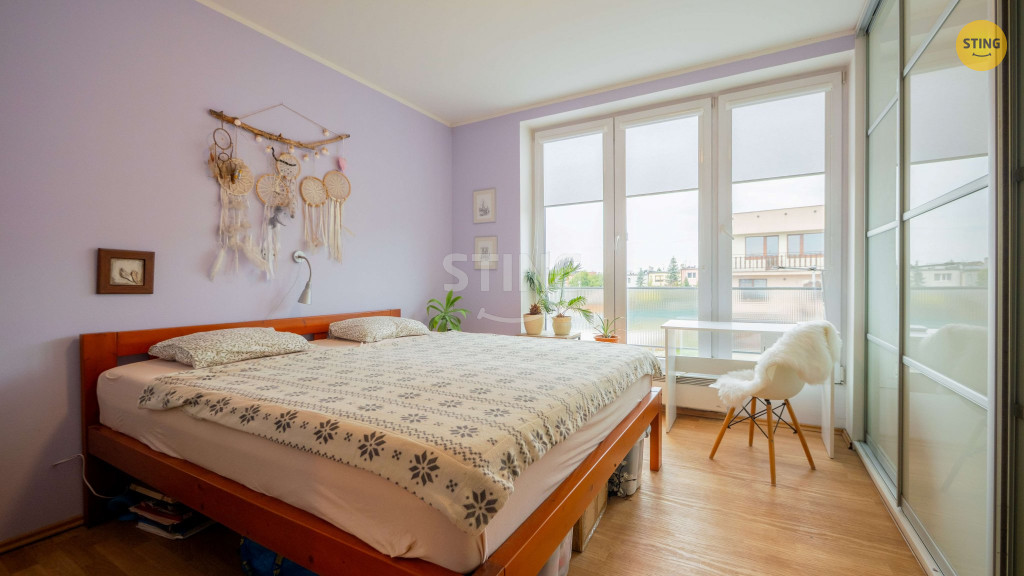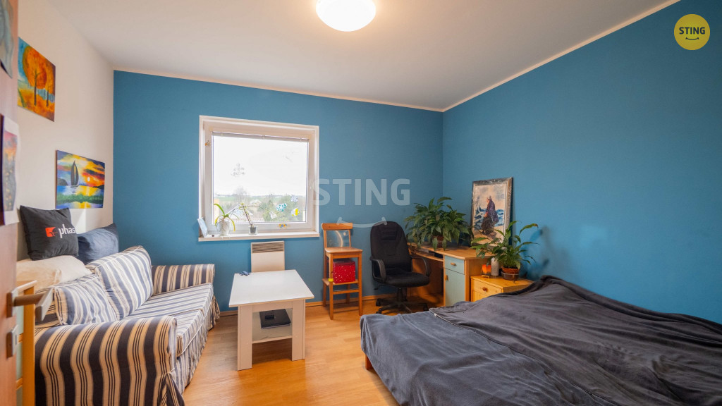 ložnice s francouzským oknem, dětský pokoj a prostorná komora, která