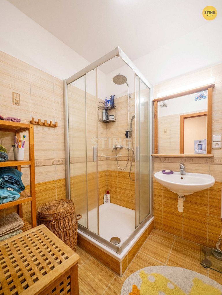může sloužit jako šatna nebo úložný prostor. Koupelna je vybavena