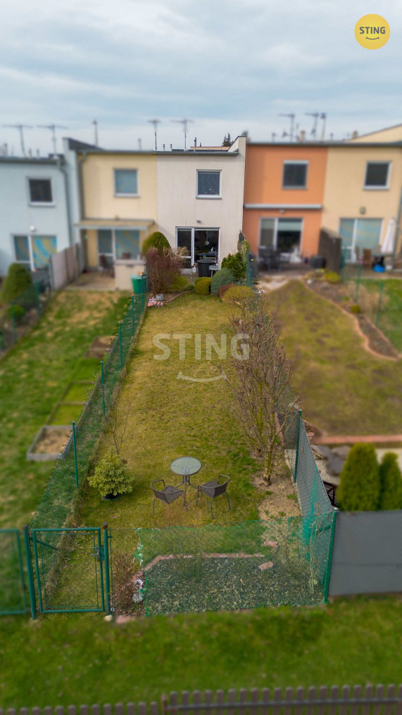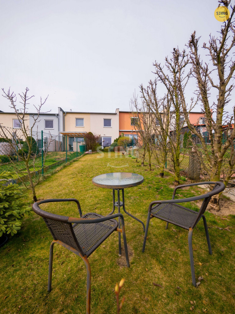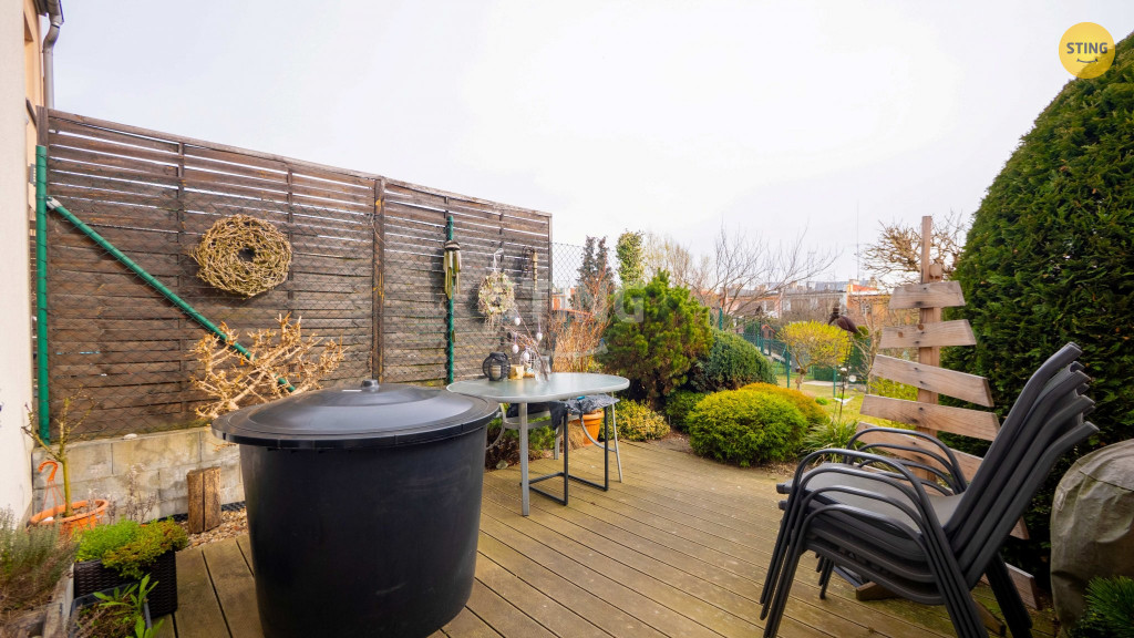 Na zahradě se nachází terasa s posezením . Hezky udržovaná zahrada je