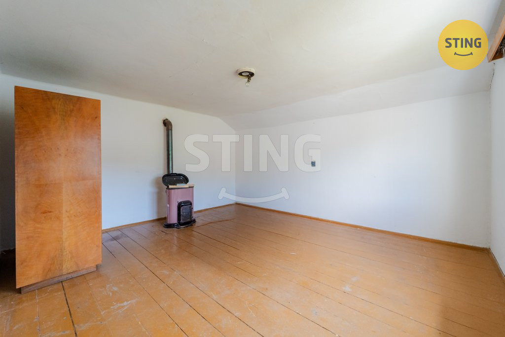 Jedna část domu disponuje 3+1 ,chodba ,dřevěné schodiště do patra ,kde se
