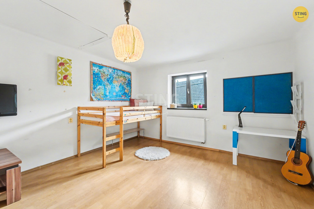 dále najdete ložnici a koupelnu, v patře dva dětské pokoje, pracovnu a