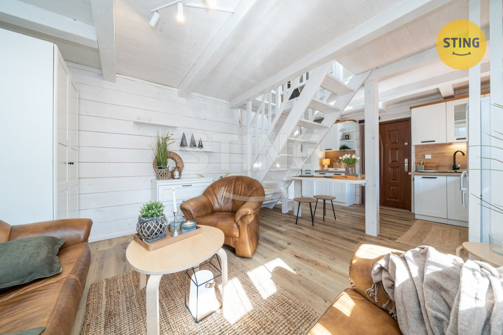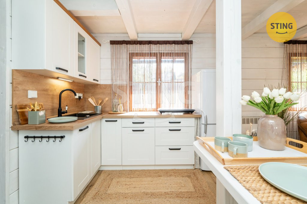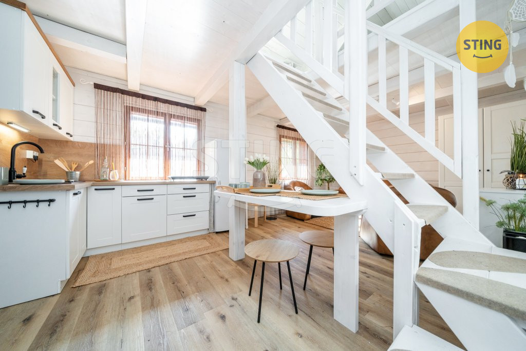 o dřevostavbu s dispozicí 2+kk, která je pečlivě navržena tak, aby