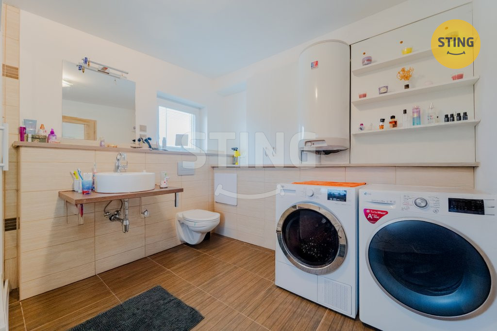 Suterén: garáž, technické místnosti a kotelna. Vytápění domu zajišťuje