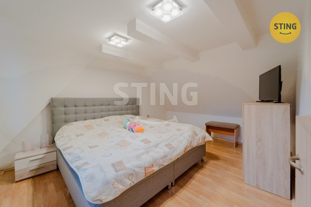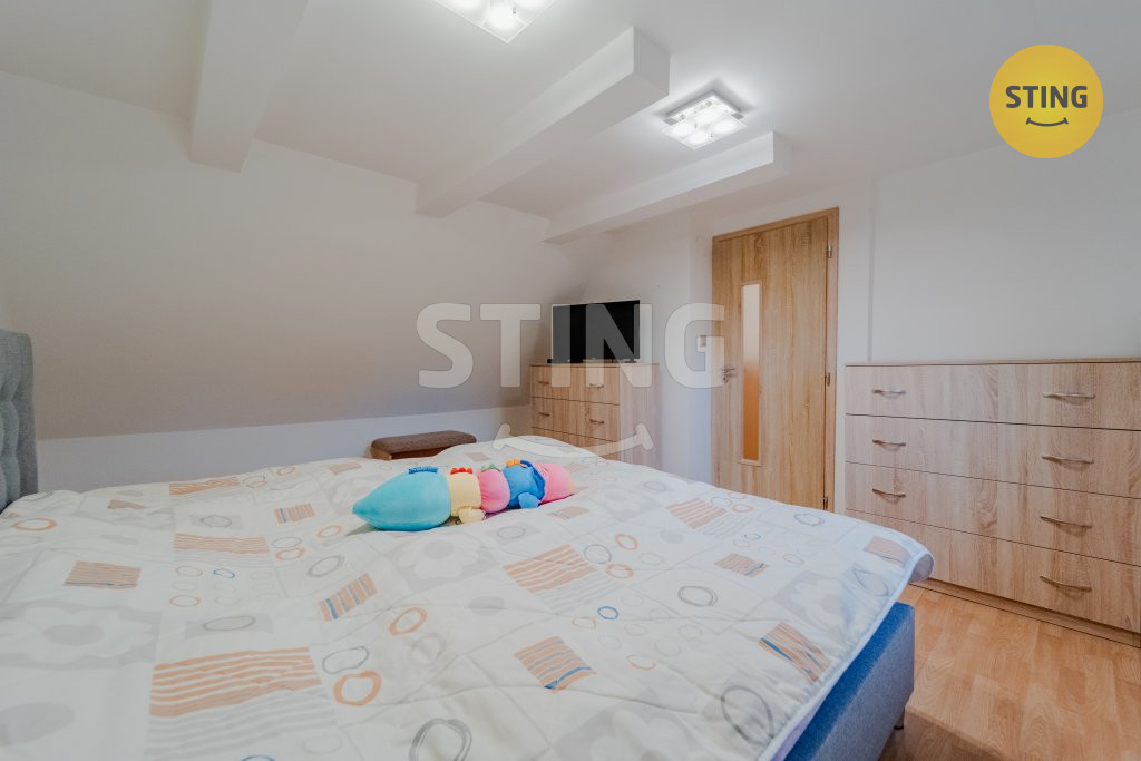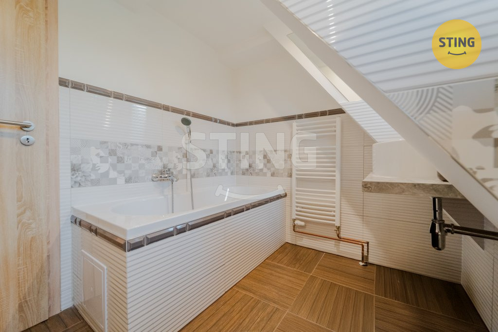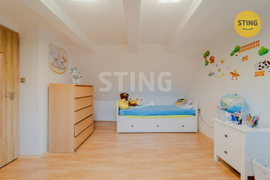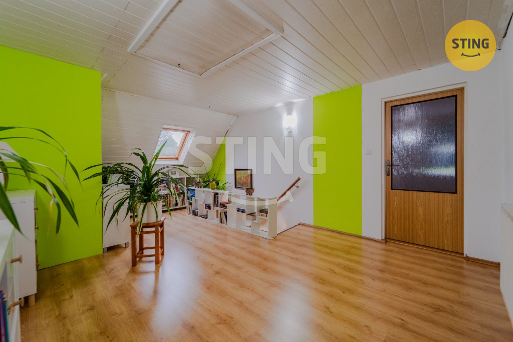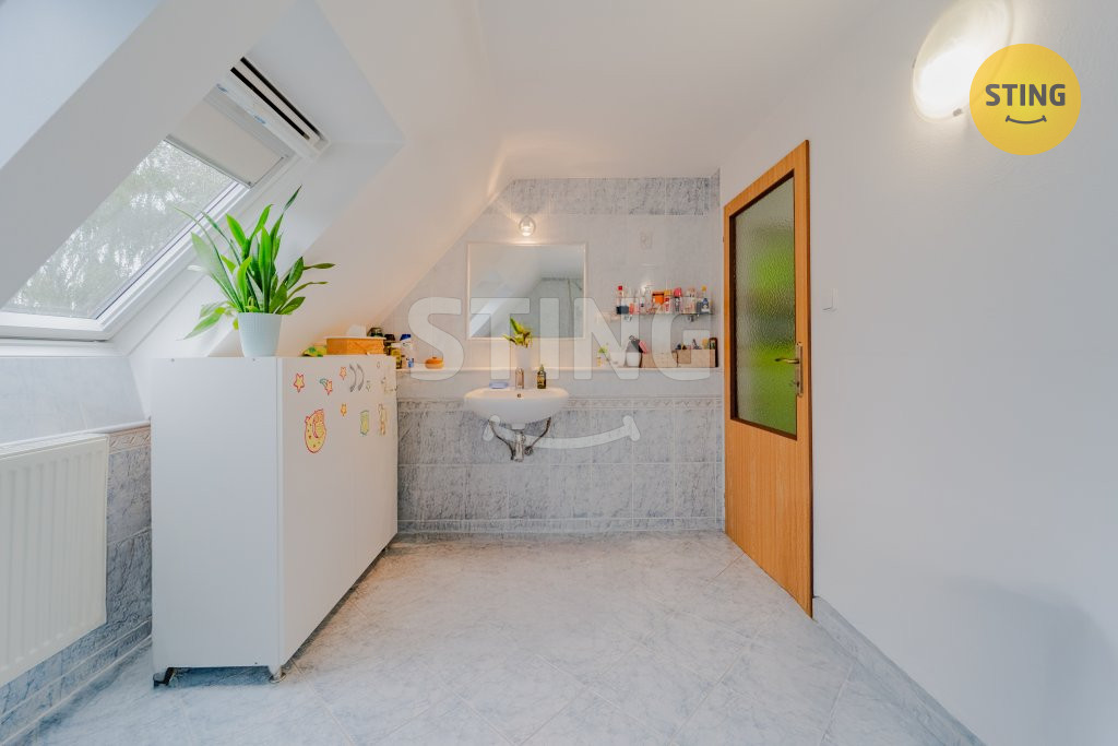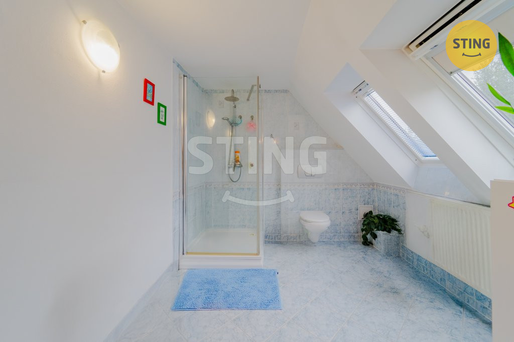 Podkroví: tři samostatné pokoje a druhá koupelna.