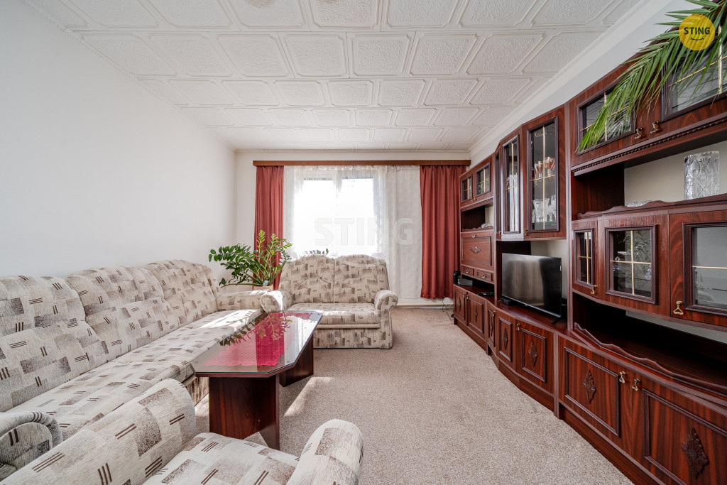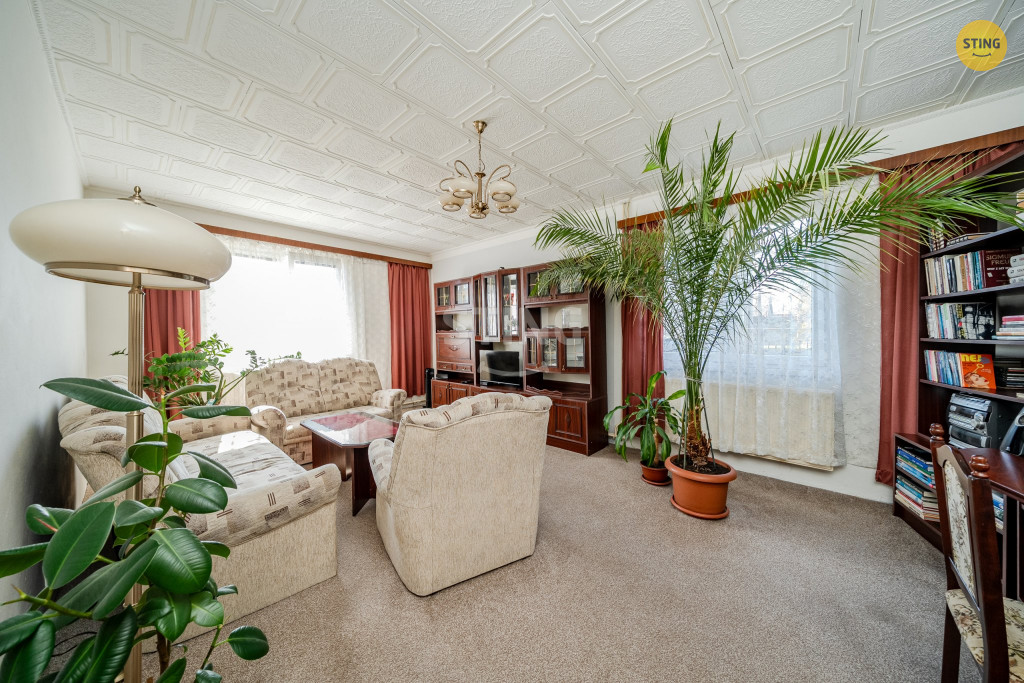 s menší chodbou, dále velmi pěkný, světlý, obývací pokoj o výměře