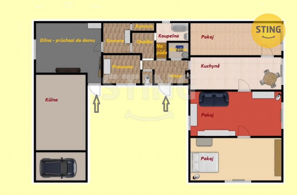 Dům disponuje dispozicí 3+1 s pracovnou a komorou a je propojen