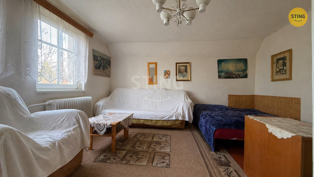 V první patře domu se nachází 2 pokoje a potenciál pro vybudování