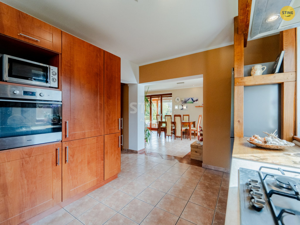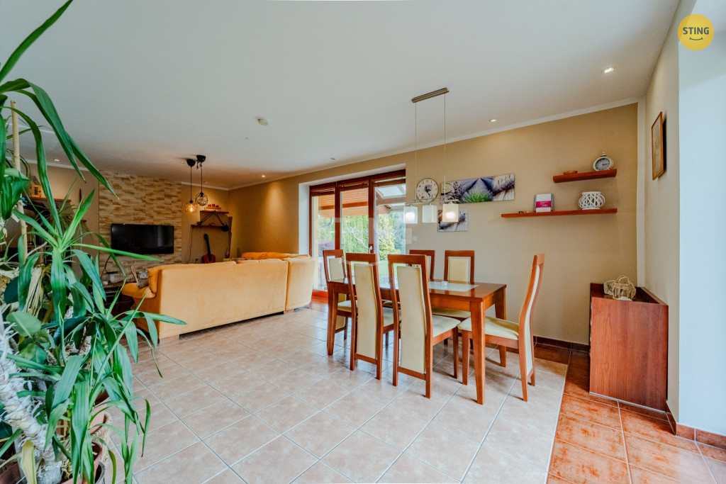 s jídelnou a přímým vstupem na terasu ze dvou stran, světlá a plně