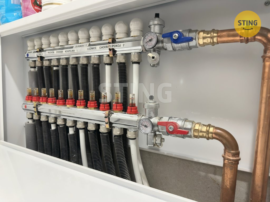 O příjemné teplo se stará elektrokotel Vaillant s podlahovým topením po