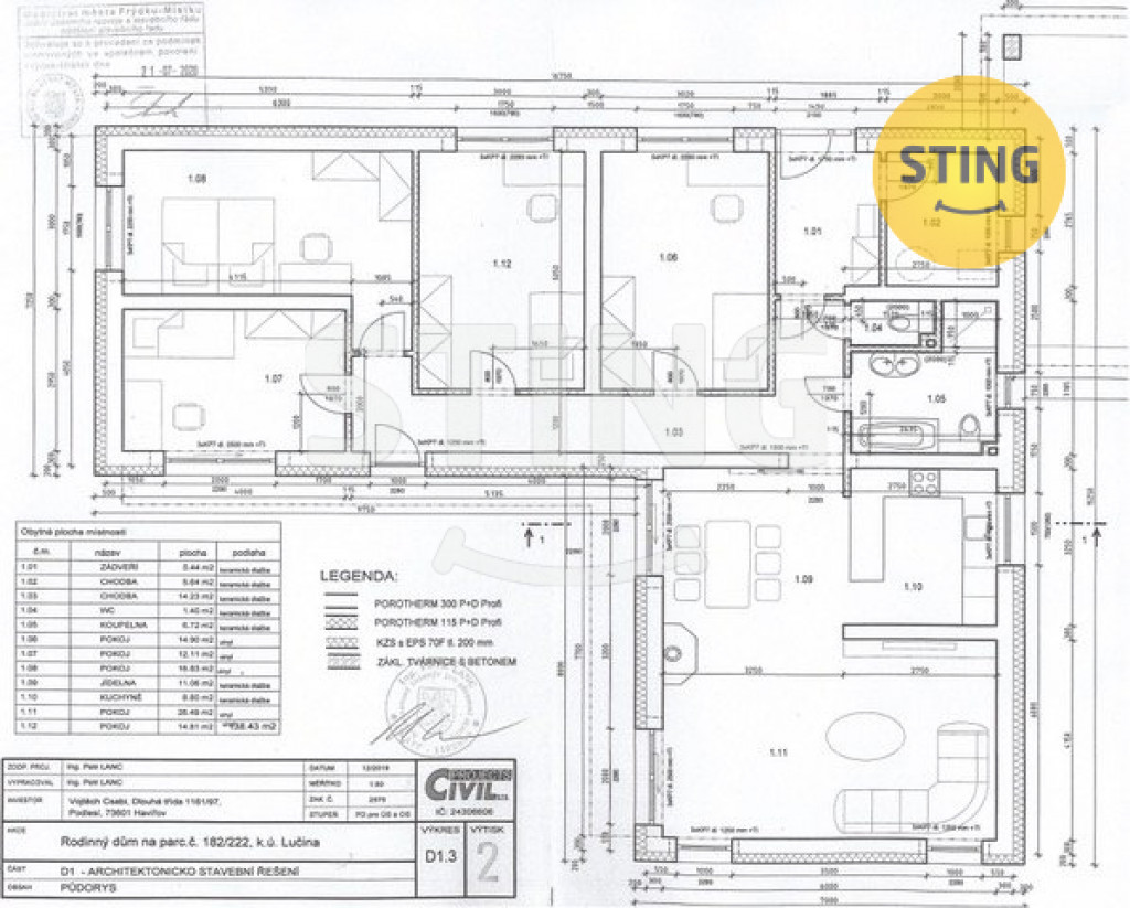 Celková užitná plocha domu činí 138,43 m? + zastřešené parkovací