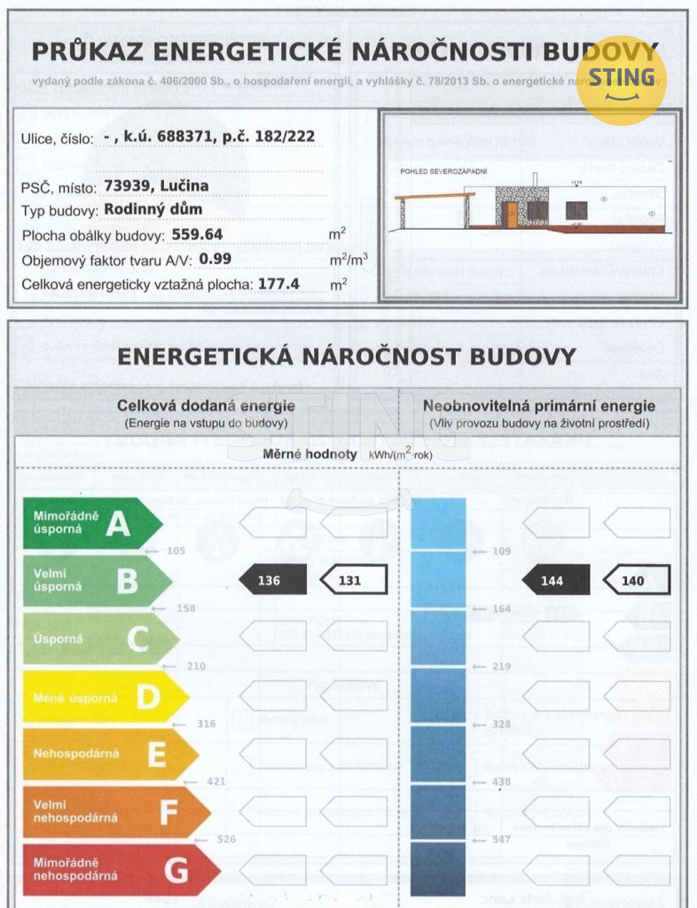 bydlení, energetická náročnost B – velmi úsporný, což vám zajistí