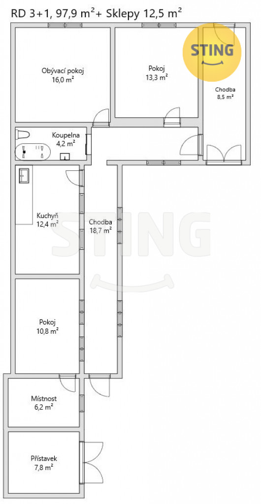 zastavěnou plochu 98 m?, je částečně podsklepený a stojí na pozemku