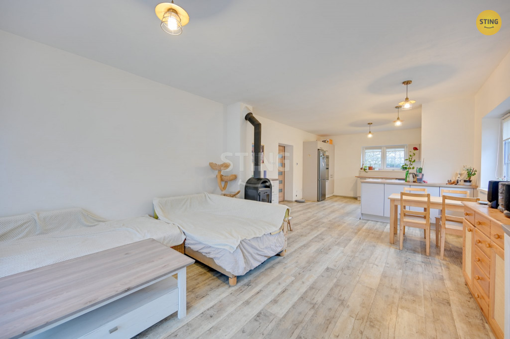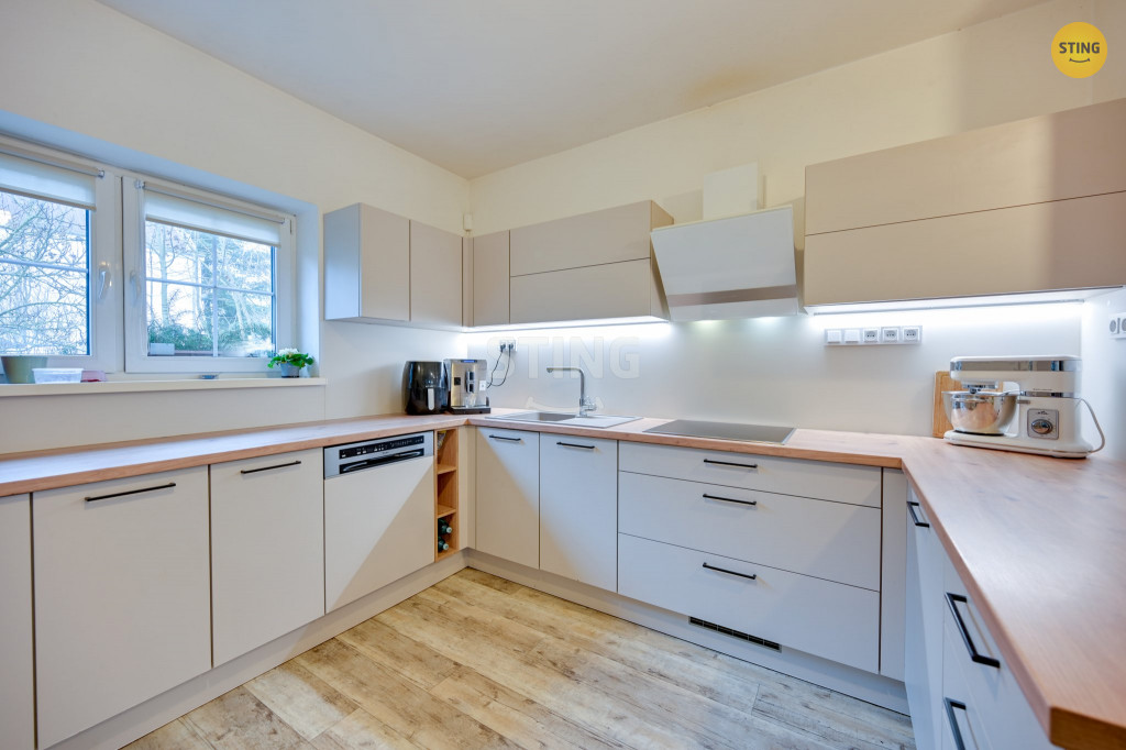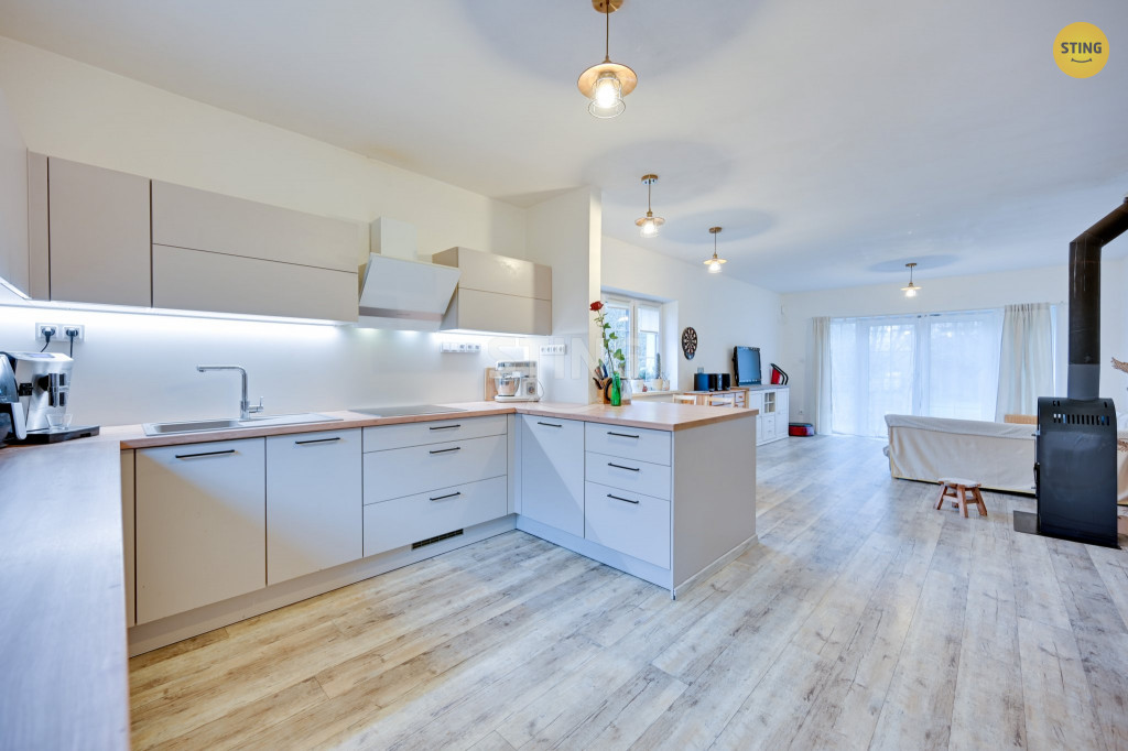 s kuchyňským koutem (cca 40 m?). Moderní kuchyňská linka je vyrobena na