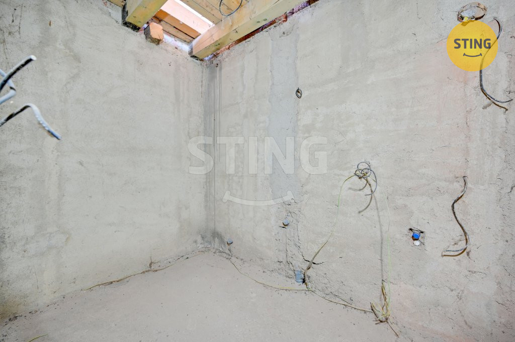 V přízemí domu jsou hotové hrubé omítky a kompletní rozvody elektřiny,