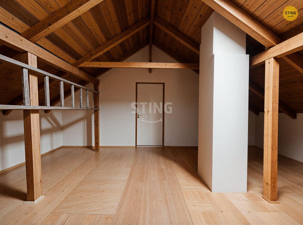 koupelna se sprchovým koutem a samostatné WC. Dům má krásné půdní