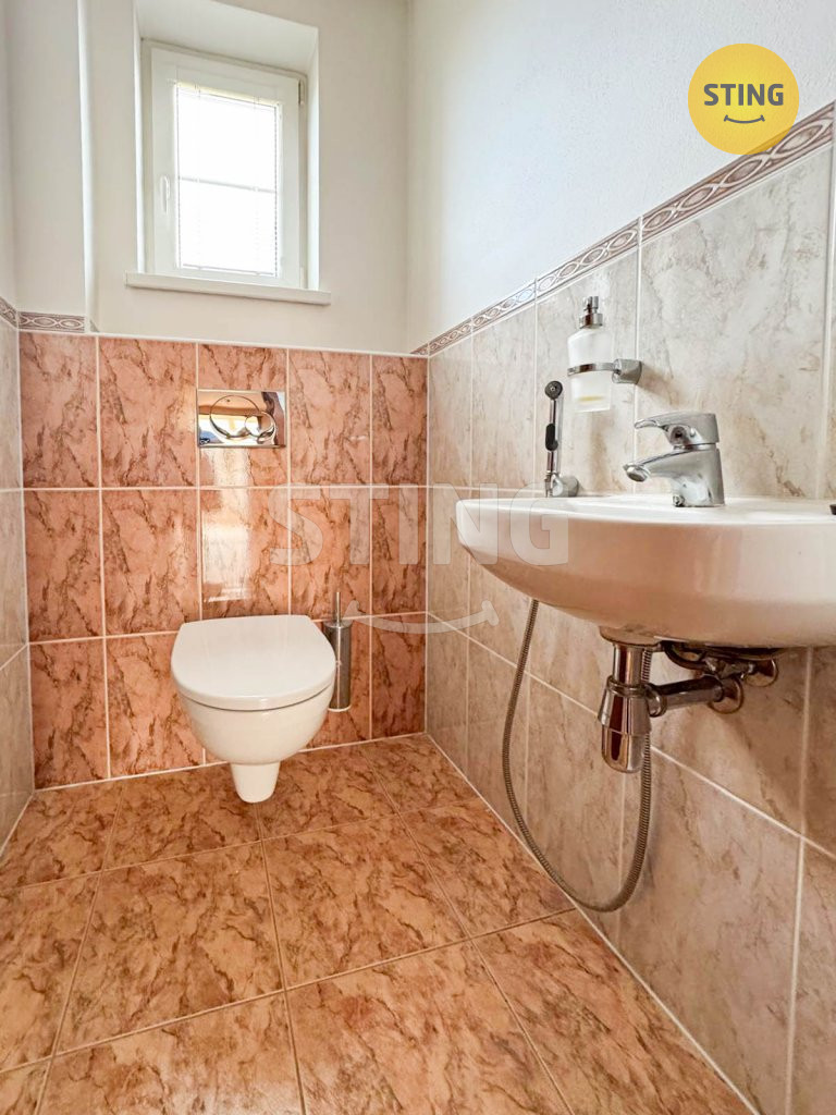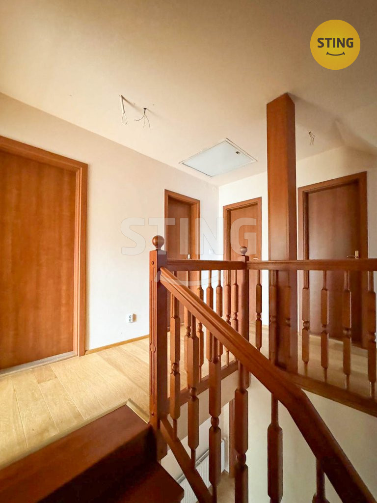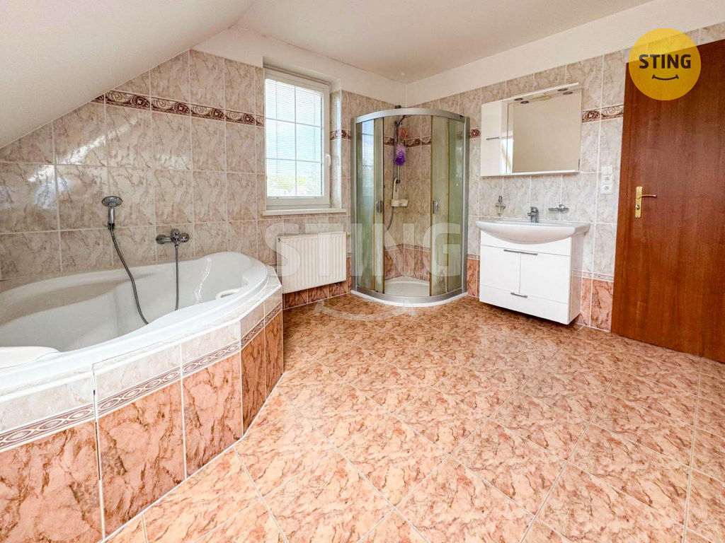 • 2. NP: tři samostatné pokoje, prostorná koupelna s vanou i sprchovým