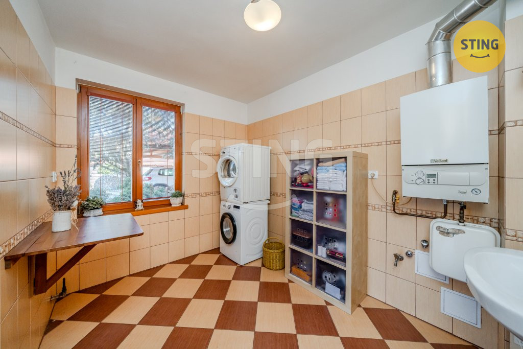 8,3 m2 (pračka, sušička), plynový kotel. Tři samostatné pokoje