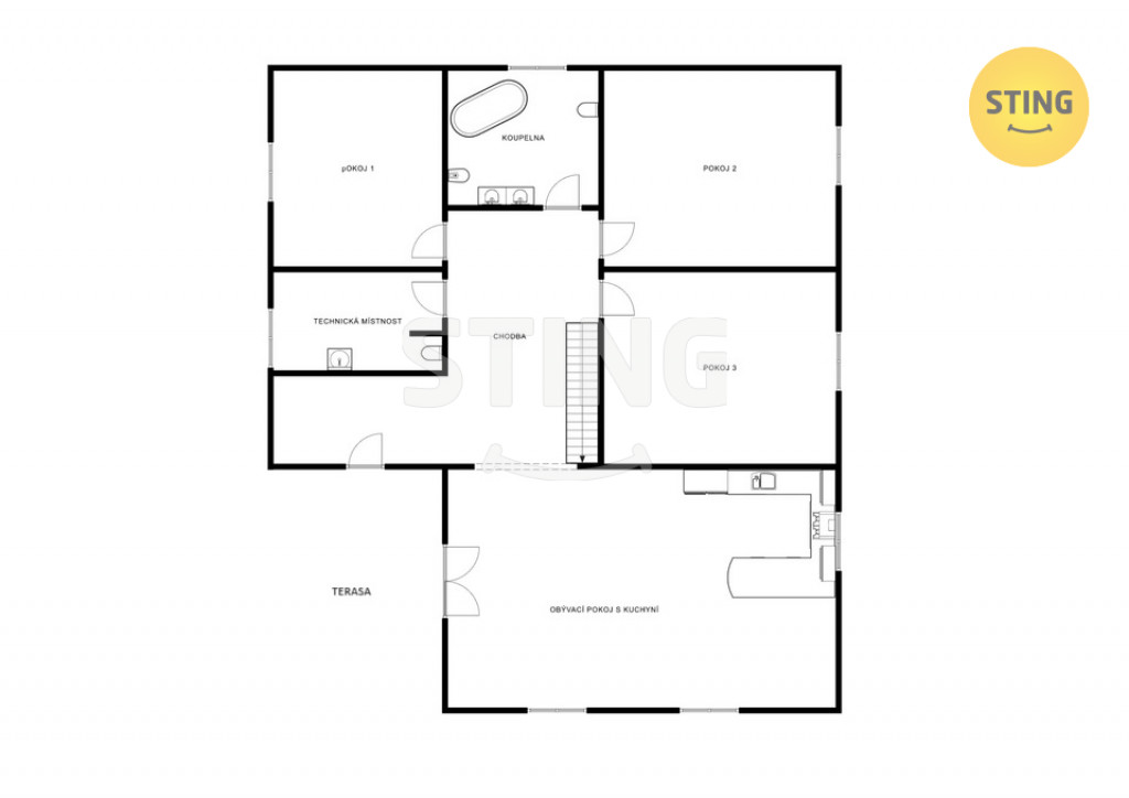 (16m2, 16,4m2, 13,5m2). Velkorysá koupelna
