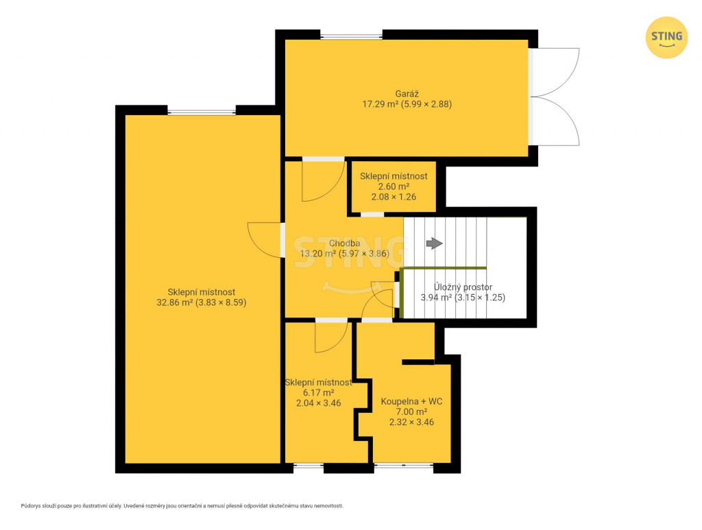 Vila má 3 podlaží – jedno podzemní a dvě nadzemní, je podsklepená a