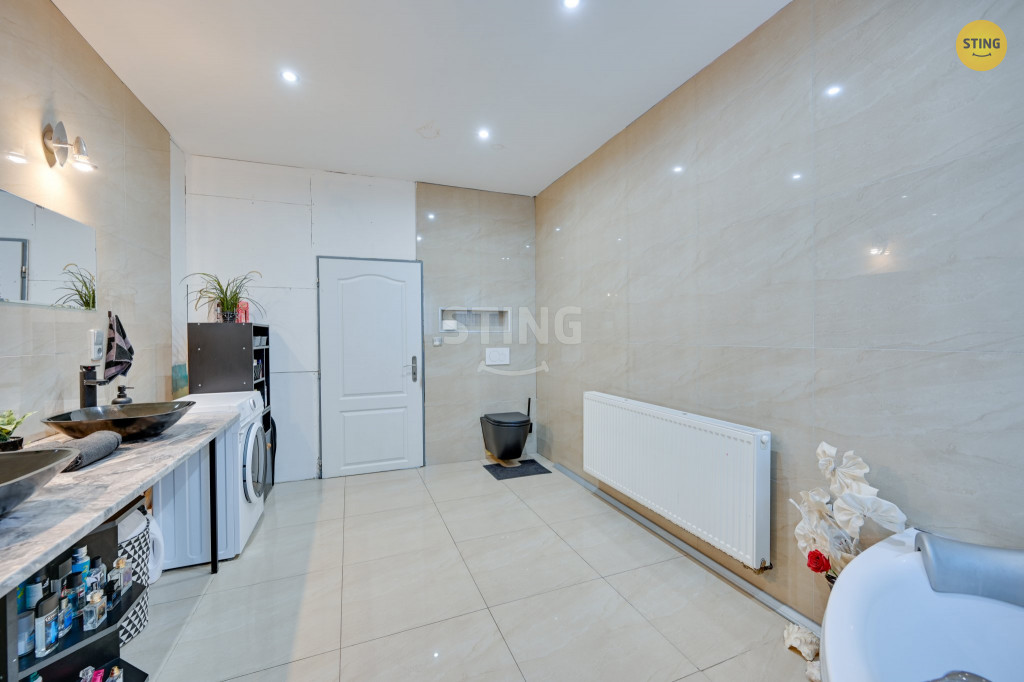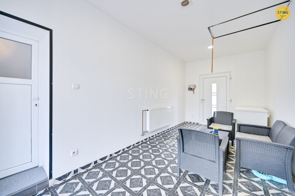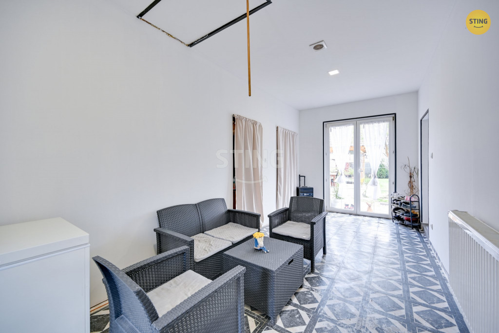 2 menší technické místnosti. Tato část je průchozí na zahradu. Dále je
