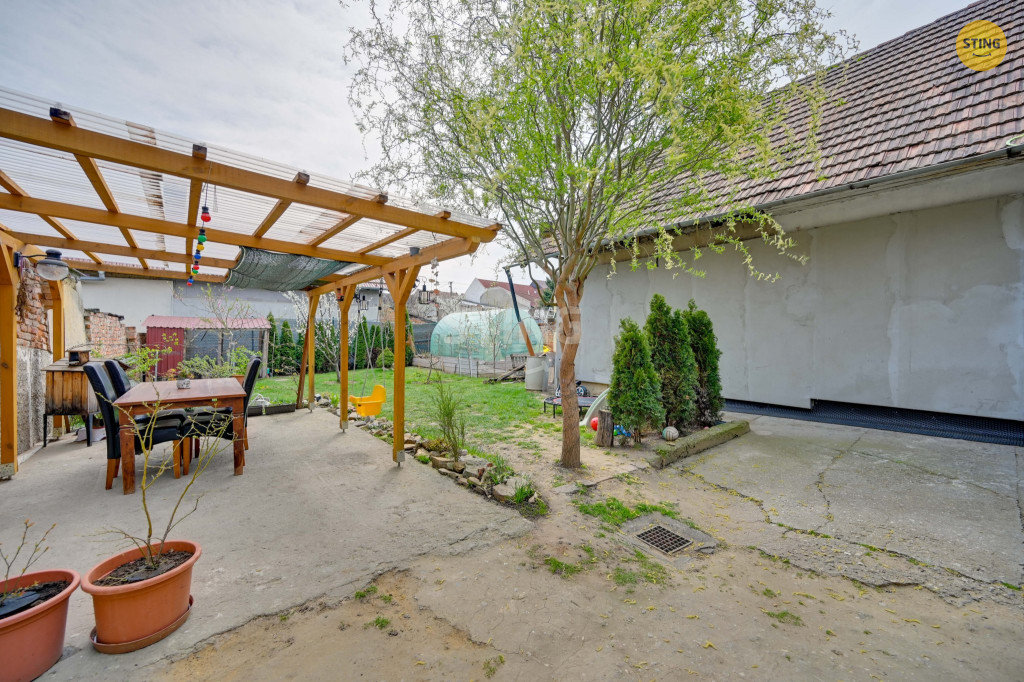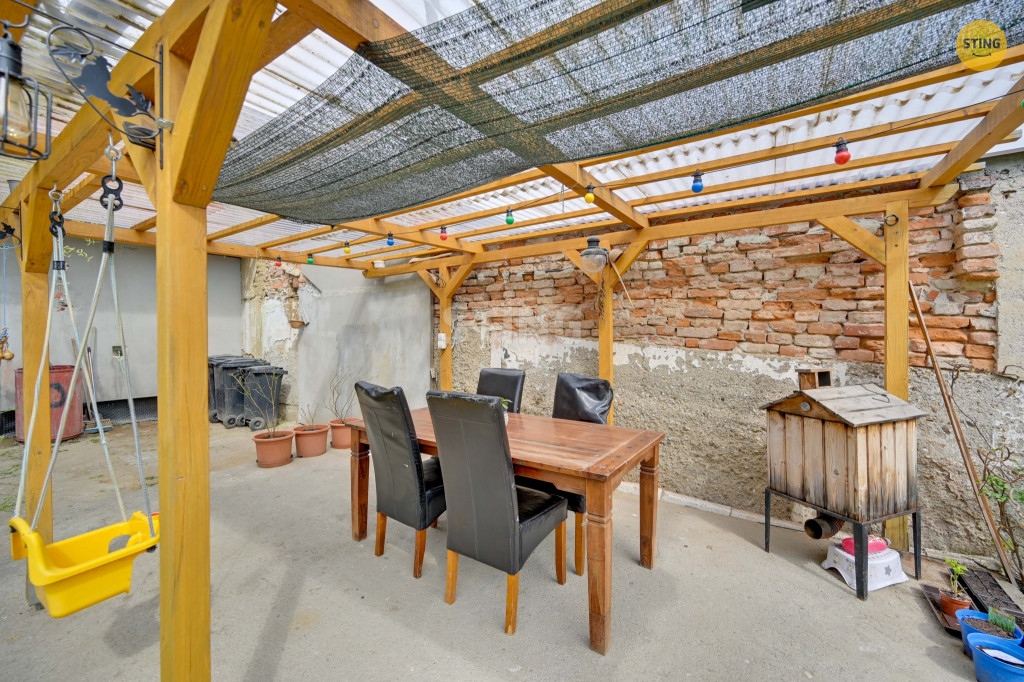 Na zahradě je příjemné posezení pod pergolou, je zde také skleník.